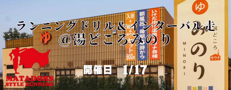 【募集中】1/17(土)ランニングドリル&インターバル走@湯どころみのり(温泉、ランチ付)