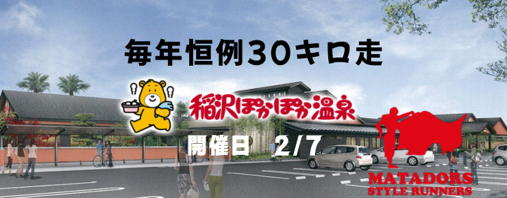 【募集中】2月7日(土)8時スタート、稲沢チャレンジ30キロ走@マタドール ※入浴&食事付き