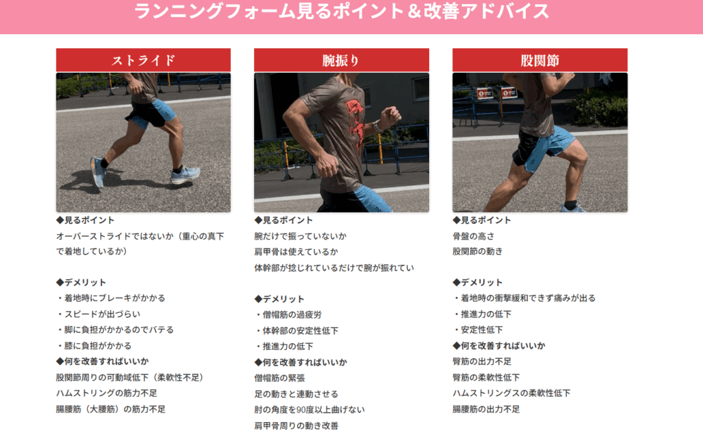 ランニングフォーム分析&改善レッスンのページにて詳細をご確認ください!