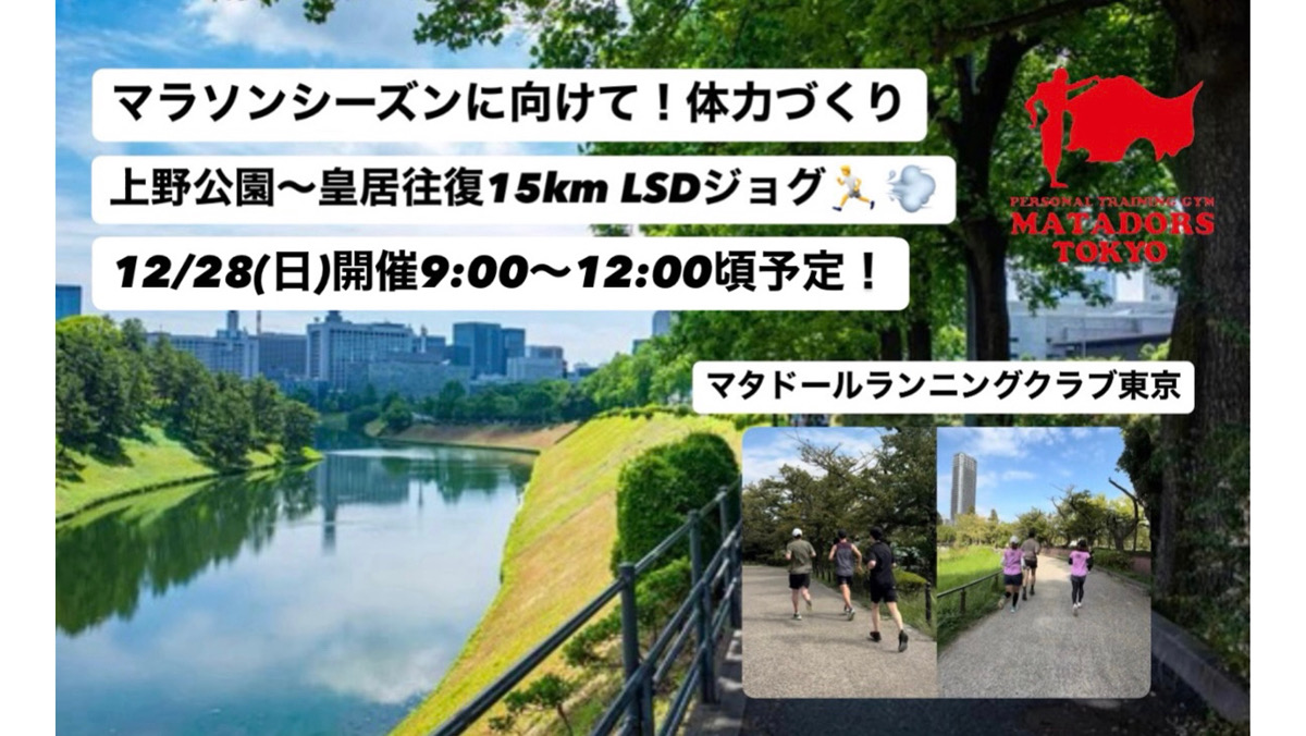 【募集中】12月28日(日)マラソンに向けて!初心者でも完走!上野皇居15kmジョグイベント!マタドールランニングクラブTOKYO